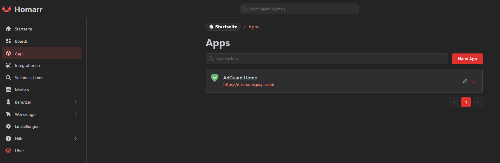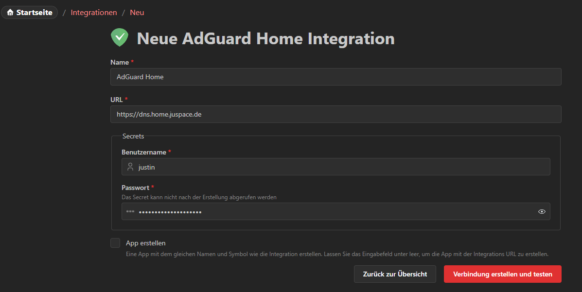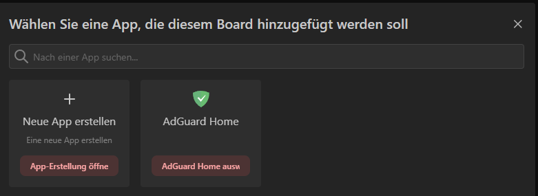 Unter Apps erstellen wir unsere ganzen Applikationen, die wir so im Homelab haben und auf unseren Boards mit einarbeiten wollen. Als Beispiel hier schon mal AdGuard.