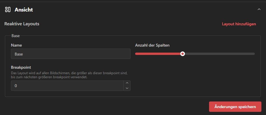 Unter Ansicht können wir die Spalten anpassen, die das Board haben soll, und weitere Layouts hinzufügen.