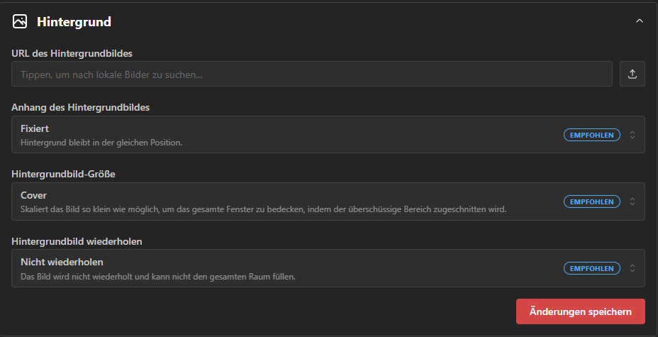 Natürlich können wir auch einen eigenen Hintergrund hochladen und hinterlegen.