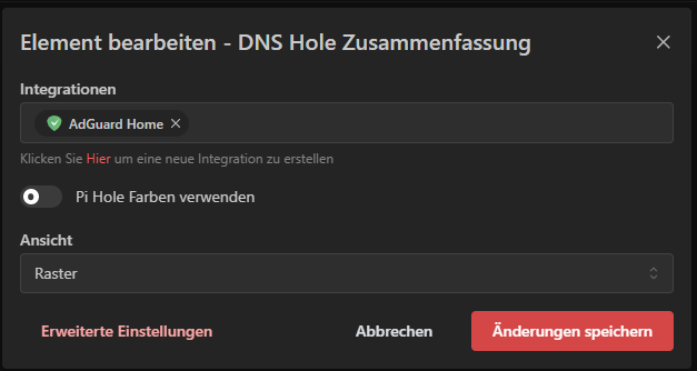 Nehmen wir bspw. die DNS Hole Zusammenfassung und erstellen die Integration für den AdGuard Home Server.
