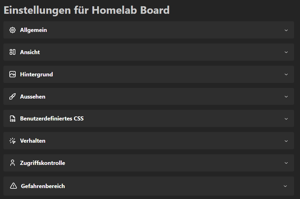 Hier können wir den Titel und ein Favicon für das Board einstellen.
