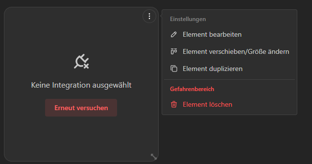 Zurück auf unserem Board können wir das Element nun auswählen und müssen dann die Integration hinterlegen.