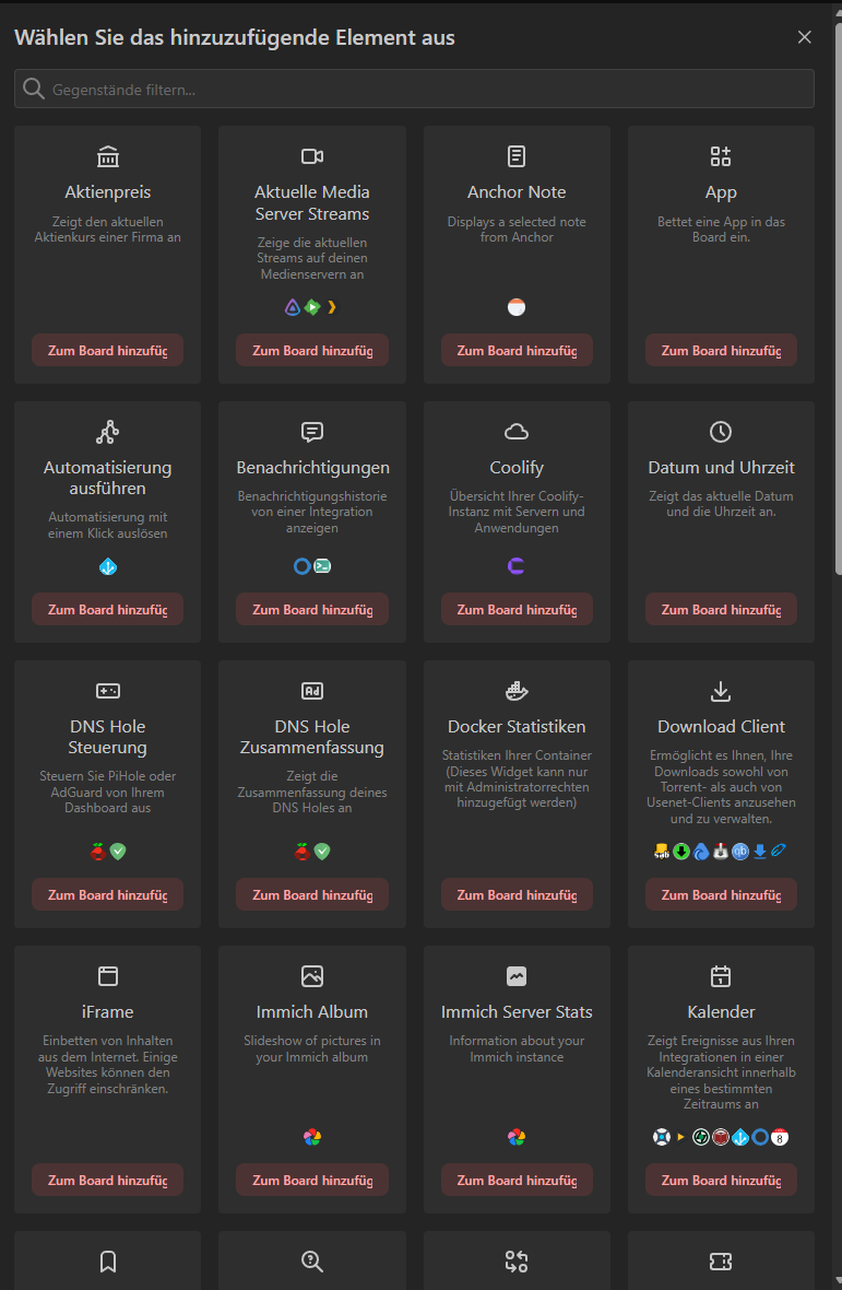 Unter dem Reiter Boards können wir neue Boards erstellen, auf denen wir unsere ganzen Apps und Integrationen nach Belieben anordnen können.