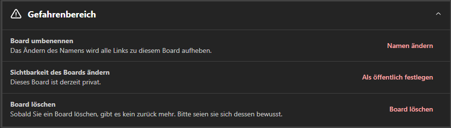 Zu guter Letzt können wir hier das Board löschen oder bspw. den Namen anpassen.