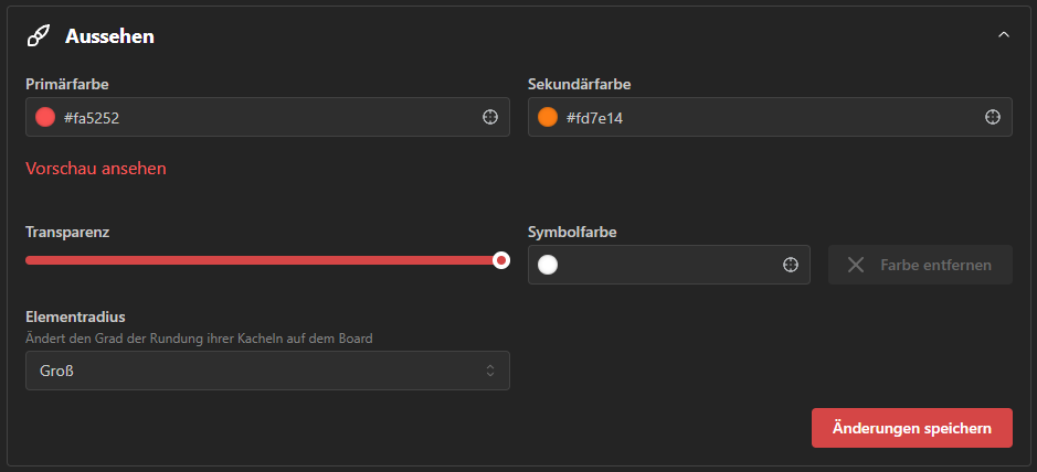 Die verwendeten Farben für die Buttons und Co. können wir unter dem Punkt Aussehen anpassen.