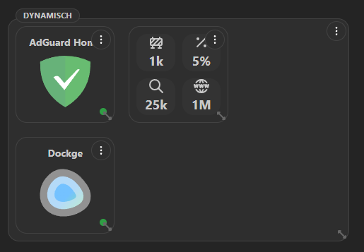 Besonders stark ist, wie schnell du von „frisch installiert" zu einem wirklich nützlichen Dashboard kommst – egal, ob du nur ein paar Apps verlinken oder direkt mit Live-Daten aus Systemen wie AdGuard, Docker & Co. arbeiten willst.