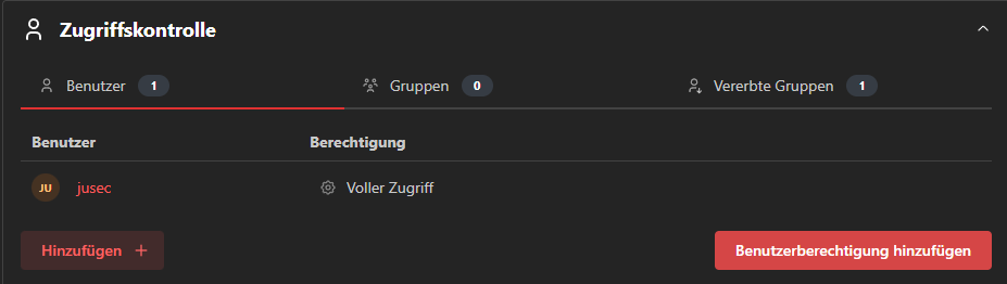 Wir können hier Benutzer und Gruppen für das Dashboard berechtigen, damit sie es einsehen und ggf. bearbeiten können.