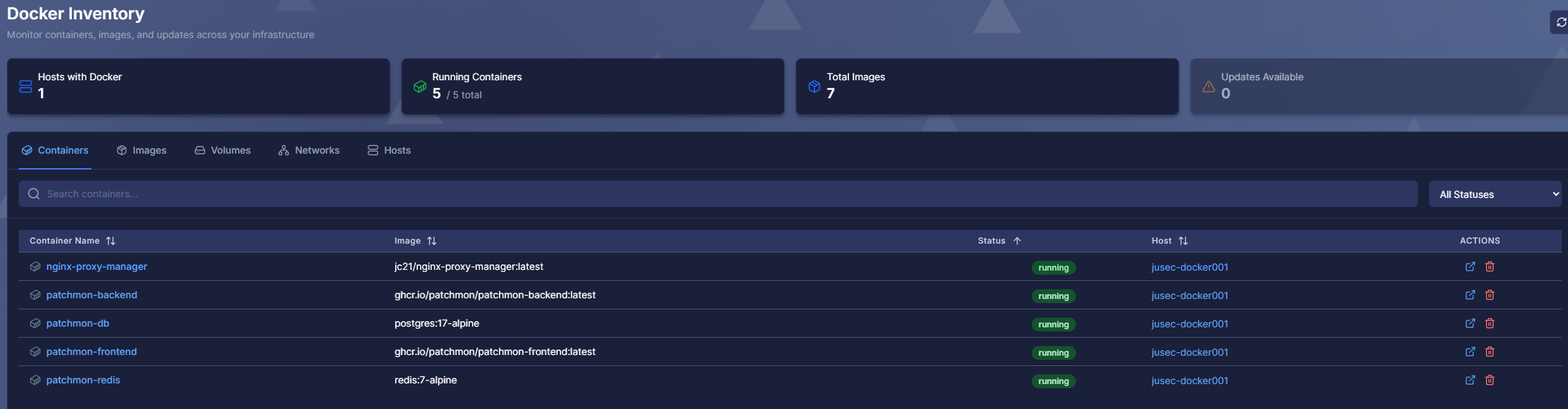 Die Docker-Integration gibt die Möglichkeit, Docker-Container auf den Hosts ebenfalls auf Updates zu überprüfen.