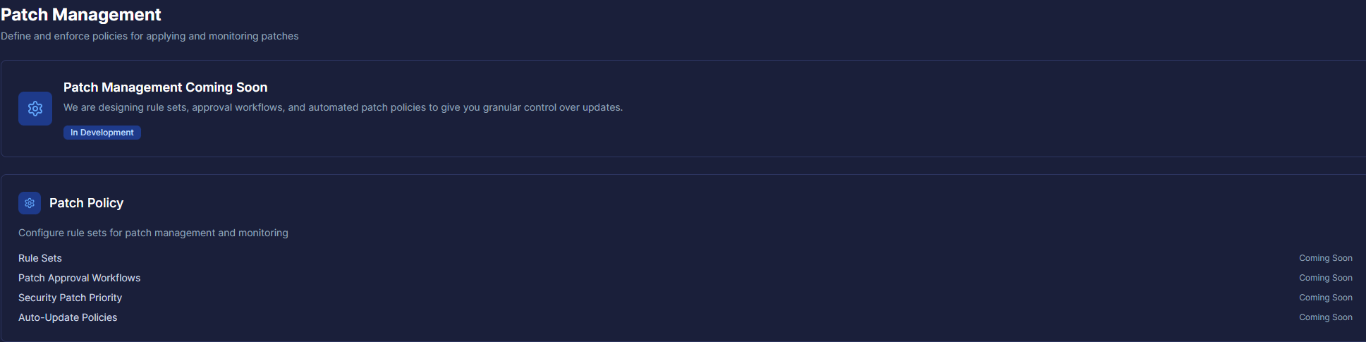 Ein Feature, das auch sehr viel Potenzial beinhaltet, aktuell aber auch noch in Entwicklung ist, sind Policys für das Patch-Management. Diese erlauben uns später, genau zu definieren, was wann passieren soll, inklusive Auto-Updates.