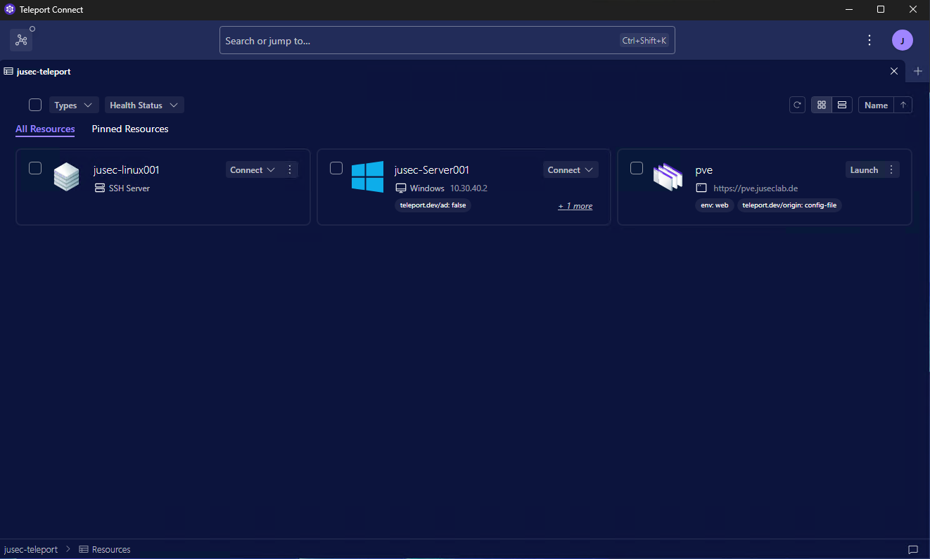 Nachdem Teleport grundlegend eingerichtet ist, können wir unsere ersten Ressourcen hinzufügen, die wir dann später über Teleport bedienen können.