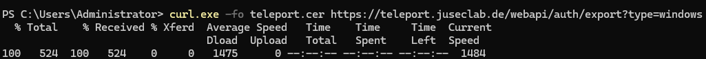 curl.exe -fo teleport.cer https://teleport.juseclab.de/webapi/auth/export?type=windows