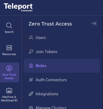 Damit wir uns via Teleport auf die Ressource verbinden können, müssen wir in Teleport selber noch eine entsprechende Rolle erstellen & unseren Benutzer damit versehen.