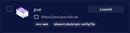 Natürlich haben wir auch die Möglichkeit, ein Webinterface über Teleport erreichbar zu machen. Das können wir bspw. nutzen, um an ein OPNSense-Interface zu kommen oder bspw. auf unser Proxmox-Cluster zuzugreifen.